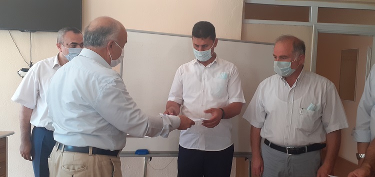 Son Güncelleme: 25 Haziran 2020 11:07 Çorum’un Osmancık ilçesinde korona virüsle mücadele kapsamında Vefa Sosyal Destek Grubu’nda yer alan din görevlilerine başarı belgesi takdim edildi. Osmancık Kaymakamlığı korona virüs tedbirleri kapsamındaki sokağa çıkma kısıtlaması süresince vatandaşların her türlü ihtiyacını gideren Vefa Sosyal Destek Grubunda görev alan din görevlilerini başarı belgesi ile ödüllendirdi. Osmancık İlçe Müftülüğü tarafından, Müftülük toplantı salonunda belge dağıtım töreni düzenlendi. Düzenlenen törende İçişleri Bakanlığınca ilçe kaymakamlığı bünyesinde oluşturulan “Vefa Sosyal Destek Grubu” çalışmalarına katılarak, 65 yaş ve üzeri vatandaşların ihtiyaçlarını karşılamak için mesai mefhumu gözetmeyen 86 din görevlisi için başarı belgesi hazırlandı. Sosyal mesafe kurallı oturma düzenine göre yapılan törene 40 din görevlisi davet edilerek başarı belgeleri İlçe Müftüsü Dr. Eyyup Aydın tarafından ilçe kaymakamı Hakan Alkan adına taktim edildi. Kur’an-ı Kerim tilaveti ile başlayan törende İlçe Müftüsü Dr. Eyyup Aydın; “Kaymakamlığımız bünyesinde oluşturulan Vefa Sosyal Destek Gurubu’nda 86 personelimiz görev almıştır. Personelimizin topluca fedakârlığının karşılığı olarak Kaymakamımız başarı belgesi ile ödüllendirmeyi uygun gördüler. Salonumuz 100 kişilik ama aralarda mesafeli oturma zorunluluğu olduğu için 40 personelimizi davet ettik. Bu başarı belgesi başarı olduğu için başarıdır. Kurumumuz için övünç kaynağıdır. Bu gururu yaşattığınız için hepinize ayrı ayrı teşekkür ediyorum. Kovid mücadelesinde Müftülük olarak ta personel olarak ta iyi bir sınav verdik. Halende vermeye devam ediyoruz. Bu sıkıntılı dönemde insanlarımıza milletimize faydalı olduk. Büyüklerimizde bu başarıyı gördü. “dedi. (İHA)