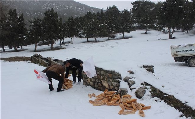 Hayırsever İşadamı Ahmet Yılmaz ve Hayati Kurşun´un organize ettiği etkinlik sayesinde doğada yem bulamayan yaban hayvanları ve kuşlar beslenme fırsatı buluyor. Yaban hayvanlarının beslenmesi için üzerine düşen görevi yerine getirdiklerini ifade eden Ahmet Yılmaz konu ile ilgili yaptığı açıklamada, ” Vatanseverlik sadece ülke nimetlerini sevmekle olmaz. Vatanın taşını toprağını, kurdunu kurşunu bir bütün olarak sevmekle tamam olur diye düşünüyorum. Her ne kadar Berlin de yaşasak ta gönlümüz hep buralarda. İlçemizde de konuya duyarlılık gösteren birçok hemşerimizin var olduğunu biliyorum. Amacım toplumsal farkındalık yaratmaktır. Bizim yaptığımız kar topağının ilk kütlesini oluşturmak ve yuvarlamak. Umuyorum ki, duyarlı hemşerilerimizin katkıları ile Yaban Hayvanlarına yapılan bu yardımlar çığ gibi büyüyerek devam edecektir. Allah izin verirse ben bu aksiyonu her sene yapacağım. ” dedi. Proje Koordinatörü Hayati Kurşun da ” Allah hepsinden razı olsun. Ahmet ağabey gibi duyarlı insanlar sayesinde yaban hayvanları kısmen de olsa açlıktan kurtulacak. Ülkemizin taşı toprağı ve üzerinde yaşayan tüm canlılar bizim için çok önemlidir. Yunus Emre´nin de dediği gibi; Yaratılanı severiz, yaratandan ötürü.” diyen sayın Kurşun bu zor hava şartlarında herkesi kurda kuşa destek olmaya davet ediyorum” dedi. Etkinliği Hayırsever işadamı Ahmet Yılmaz´ın Berlin´de olmasından dolayı Osmancık´ta Hayati Kurşun organize etti. Yaklaşık bir ton yem ve bin adet ekmek Osmancık´ın çeşitli bölgelerinde karla kaplı alanlara bırakıldı. Dağıtım çalışmalarının yapıldığı bölgelerde zor şartlar altında üstlendikleri görevi yerine getirmeye çalışan Hayati Kurşun ve ekibi zaman zaman araçlarının çamura ve kara saplanmasından dolayı yollarda mahsur kaldı.