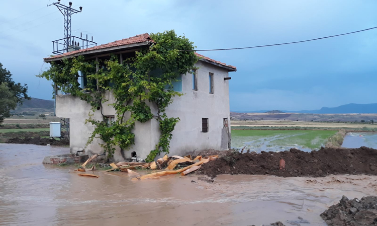Son Güncelleme: 21 Haziran 2020 11:28 Osmancık ilçesinde etkili olan yağış sonucu Girinoğlan Köyü çayı taşarken, Evlik köyündeki çeltik tarlalarını sular altında kaldı. Sel nedeniyle 60 dönüm çeltik arazi büyük zarar gördü. Çeltik üreticisi Mustafa Boyacı, selle gelen balçığın tarlalarını kapladığını sel sularını boşaltmak için yoğun çaba sarf ettiklerini belirtti. İş makineleri ile suları tahliye ettiklerini belirten Boyacı: “Sağanak yağış nedeniyle İnegöl dağından gelen yağmur suları Girinoğlan Köyü çayını taşırarak, çaya yakın olan birçok tarım arazisini sular altında bıraktı. 60 dönüm çeltik tarlam sel suları altında kalırken, iş makineleri ile suyun tahliyesini gerçekleştirdi” dedi. İHA