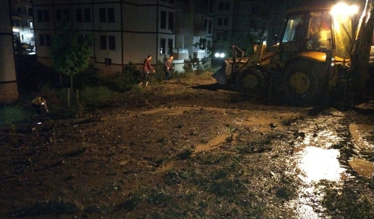 Son Güncelleme: 25 Aralık 2020 21:27 Çorum’un Osmancık ilçesinde etkili olan sağanak yağış hayatı olumsuz etkiledi. Akşam saatlerinde başlayan ve zaman zaman da etkisini devam ettiren sağanak yağış nedeniyle Koyun Baba mahallesindeki 4.Etap TOKİ konutlarındaki 6 blok’un bodrum katını su basarken, Kandiber Kalesi’nden de Çorum Caddesine kaya parçaları düştü. Su baskını nedeniyle göle dönen bodrumlarda temizlik çalışması başlatıldı. Yağışla birlikte harekete geçtiklerini belirten site yöneticilerinden Yasin Ayal; “Sağanak yağış esnasında hemen duruma müdahale ederek 15 blokun tamamının elektriğini teknisyenimiz ile birlikte kestik. Hemen akabinde YEDAŞ’ı aradık ve selden zarar gören 6 blokun elektrikleri kesilerek blokların önüne set çekilmesi için belediyeyi aradık. Bize belediyenin tek bir kepçesinin olduğu söylenince, ilçede bulunan özel bir hafriyat şirketini arayarak kepçe istedik ve hemen set çalışmalarına başladık. Şuan 6 blokun arkasına selin geldiği yönde toprak set çekilmeye başladı. Durum şuan kontrolümüz altında “dedi. İHA