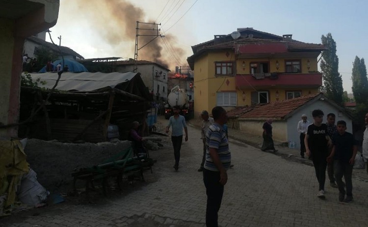 Vatandaşlar ve ekipler yangına müdahale ettiği sırada yanan evlerden birisinde patlama meydana geldi. Patlama sırasında yangına müdahale eden vatandaşlar ve ekipler büyük korku yaşadı. Kamera tarafından kaydedilen görüntülerde paniğe kapılan vatandaşların kaçtığı görüldü. Patlamanın ardından etrafa saçılan kıvılcımlar yangın bölgesinin yan tarafındaki tarlada bulunan saman balyalarına sıçradı. İtfaiye ekiplerinin müdahalesi ile alevler büyümeden kontrol altına alındı. Köydeki yangın itfaiye ekiplerinin yoğun çalışması sonucu kontrol altına alınırken soğutma çalışmaları sürüyor. Yangında Sadık Gökçe’ye ait 2 ev ve Edip Uludoğan’a ait 1 ev, 1 samanlık, traktör ve römork yandı. Yangınla ilgili başlatılan soruşturma sürüyor. (İHA)