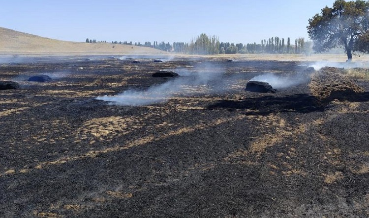 Edinilen bilgiye göre, Sungurlu ilçesine bağlı Yörüklü köyünde Hayrullah A.’ya ait tarlada henüz bilinmeyen bir nedenle yangın çıktı. Tarlada bulunan saman balyaları kısa sürede alev aldı. Yangını fark eden çevre sakinleri durumu 112 Acil Çağrı Merkezi’ne bildirdi.