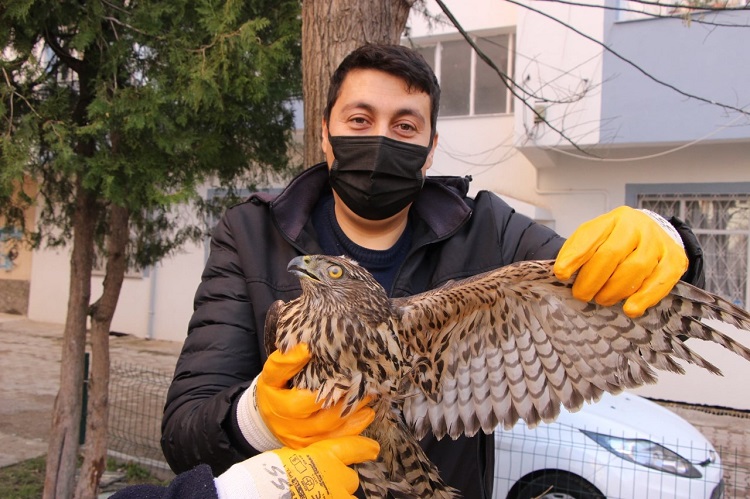 Akkaş, “Atmaca’yı sabah işe giderken yol kenarında yaralı halde buldum. Uçamıyordu, kanadından yaralı olduğunu fark ettim. Neyse ki durumunda ciddi bir şey yok, kanadından hafif yaralanmıştı. Hemen yakalayarak kafese koydum ve yiyecek verdim. Doğa Koruma ve Milli Parklar Müdürlüğünü arayarak teslim edeceğimi söyledim. Gelip aldılar. Onlarda bir can. Umarım biran önce iyileşir ve doğaya salınır” ifadelerini kullandı.
