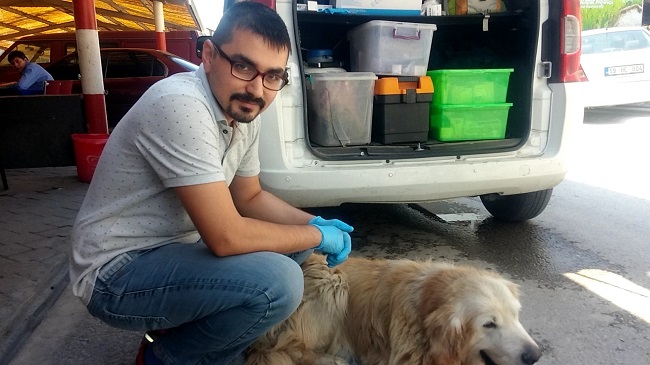 Son Güncelleme: 17 Eylül 2018 09:22 İlçede eski Yöresel Ürünler Pazarı’nın bulunduğu bölgede faaliyet gösteren esnaflar bakımını üstlendikleri ve ‘Taysın’ adını verdikleri köpeğin yaralı olduğunu gördü. Bunun üzerine esnaflar veteriner hekim Serkan Sabuncu’ya haber verdi. Köpeğin bulunduğu Gazi Cemal Erturan Sokağına gelen Sabuncu, kulağında enfeksiyon ve kafasında yaralar oluşan köpeğe müdahale ederek tedavisini yaptı. Veteriner Hekim Serkan Sabuncu, esnaflarım yardım talebine kayıtsız kalmadığını belirterek, “Köpeğin bakımsız olduğunu gördük. Ayrıca kulağında enfeksiyon vardı. Onun için ağrı kesici ve antibiyotik tedavisine başladık. Ufak bir anestezi uygulayarak da köpeğin kulağını temizleyeceğiz ve tedavi sürecini devam ettireceğiz” dedi. (İHA)