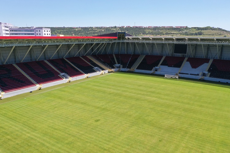 Tribün koltukları, aydınlatma ve skorbord montajının tamamlandığı stadın zemini ise alttan elektrikli ısıtmalı sisteme sahip. Genişliği 68 metre, uzunluğu ise 110 metre olan sahanın çimleri Sakarya’dan getirilen stadyumun, 25’i engelli olmak üzere 1061 araçlık park alanı bulunuyor. Tamamı kapalı tribün olan ve 1 misafir girişi, 2 güney tribün girişi, 2 doğu tribün girişi, 2 kuzey tribün girişi yer alan stadyumun bu sezon hizmete açılması bekleniyor.