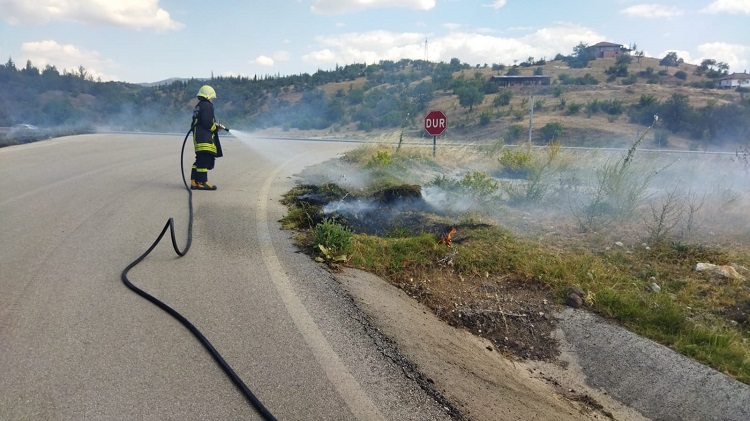 D100 kara yolu Öbektaş köyü yakınlarında kuru otların bulunduğu alanda henüz bilinmeyen nedenle yangın çıktı. İhbar üzerine bölgeye itfaiye ekipleri sevk edildi. Osmancık Belediyesi itfaiye ekiplerince söndürülen yangın nedeniyle yaklaşık 2 dekar alandaki otlar yandı. (AA)
