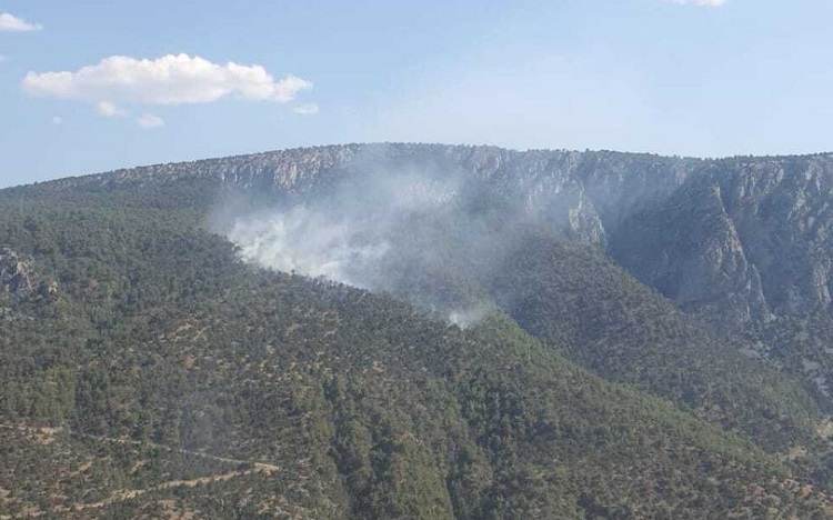 Soğutma çalışmalarının devam ettiğini aktaran Dağlı, şunları kaydetti: “Yangın yüksek gerilim hattından çıkmıştır. 28 No’lu bölmede 4,8 hektar tepe yangını, 13,3 hektar örtü yangını, 29 No’lu bölmede meşçere tipinde 2,2 hektar örtü yangını şeklinde gerçekleşmiştir. Yangın kontrol altına alınmış olup soğutma çalışmaları devam etmektedir. Yangında yaklaşık 25-30 hektar alan zarar görmüştür. Net alan, çalışmalar tamamen bittiğinde belli olacaktır.” Öte yandan yangına havadan müdahale edilmesi cep telefonu ile kaydedildi. İncirlikkaya mevkisindeki ormanlık alanda dün akşam saatlerinde henüz bilinmeyen nedenle yangın çıkmış, sarp kayalıklardan oluşan bölgeye itfaiye araçlarının ulaşamamasından dolayı yangının havadan söndürülmesi için çalışma başlatılmıştı.