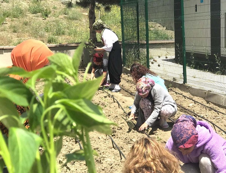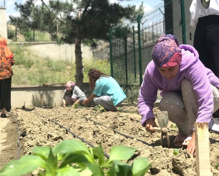 Hazırlık çalışmalarının tamamlanması ardından kız öğrencilerinin barındığı blok da öğrencilerin streslerini atmaları, bahçe işlerinde küçük de olsa görgü ve becerilerini artırma adına yurt idaresi ve çalışanlarca organize edilen faaliyet öğrencilerin yoğun ilgisiyle karşılandı. Yurt yönetimi tarafından yapılan açıklamada, “Bölgemizin coğrafi şartları da göz önüne alınarak toprakla buluşan sebze tohumları ve fideler ürün vermeye başladıkları sonbahar aylarında öğrencilerimiz tarafından hasat edilerek yurt yemekhanesinde diğer öğrencilere ikram edilecek. Geçtiğimiz yıl yapılan hasatla elde edilen ürünlerle yurt mutfağında kız öğrencilerimize geleneksel ev turşusu yapımı uygulamalı olarak gösterilmişti” ifadeleri kullanıldı. (İHA)