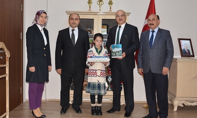 Son Güncelleme: 13 Mart 2018 16:25 İl Milli Eğitim Müdürü Seyit Ali Büyük eTwinning projelerinin anaokullarından başlayarak artış gösterdiğini belirterek: “Öğrencilerimizin sosyal, kültürel faaliyetlerde yer almalarını önemsiyoruz. Öğretmenlerimizin fedakarlıklarıyla güzel projeler ortaya çıkıyor. Bu tür projeler hem öğrencilerimiz hem de öğretmenlerimiz arasında birlik beraberlik duygusunun gelişmesine katkı sağlıyor. Çocuklarımızın kendilerine olan güvenleri gelişiyor. Her okulumuzun bir eTwinning projesi olmasını istiyoruz. Bu güzel projedeki başarınızdan dolayı öğrencimizi ve sizleri tebrik ediyorum.” dedi. İskilip İlçe Milli Eğitim Müdürü Süleyman Atçıoğlu ve Okul Müdürü Süleyman Toprak’ın da katıldığı kabulde proje hakkında bilgi veren Danışman Öğretmen Yağmur Yılmaz: “Öğrencilerin okuma yazma alışkanlığı kazanmalarının yanında düşünebilen, yeni fikirler üretebilen, kültürüne sahip çıkan bireyler olarak yetişmelerini sağlamak amacıyla yürütülen bu projeye katılan Zeynep’in İskilip’i anlatan ‘Memleket Havası’ isimli öyküsü 43 ilden seçilen öykülerden oluşan kitapta yer aldı.” dedi. Ziyarette İskilip Atatürk Ortaokulu 5. sınıf öğrencisi Zeynep Yenilmez kitabını imzalayarak İl Milli Eğitim Müdürü Seyit Ali Büyük’e hediye etti.